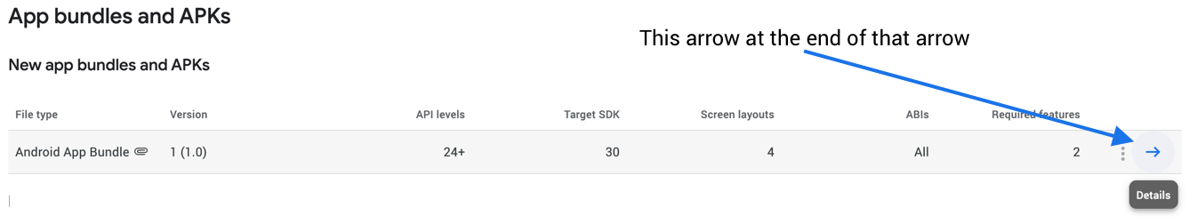 To take a look at how the Play Store ships your app to a user's device, you can click on the "Details" button at the end of the bundle's row.
